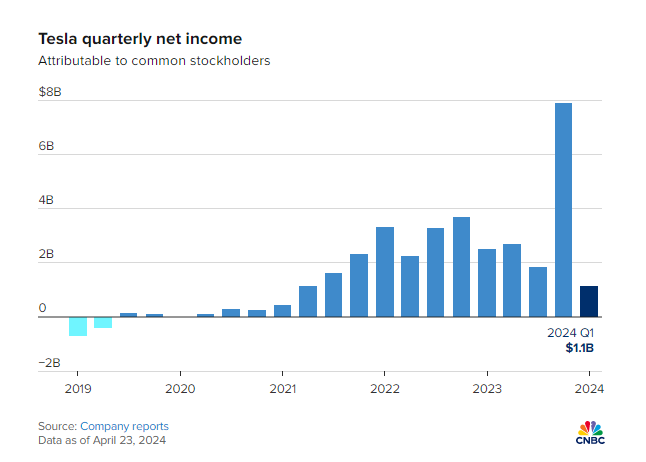 由于對交付疲軟、中國競爭和公司持續降價的擔憂,特斯拉股價今年暴跌了40%以上。本月早些時候,特斯拉公布第一季度汽車交付量同比下降8.5%。