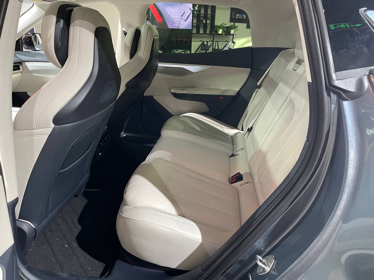 得益于2843mm的軸距,領克07 EM-P整個后排的空間我覺得也是比較的寬敞。而且,它的地臺采用純平的設計,這無疑是增加了后排的乘坐空間。不過它后排的座椅坐墊并不是很長,對于大腿不能起到一個很好的支撐。在配置層面,后排配備了USB接口和Type-C 接口,而且它會加一個面積比較大的中央扶手,這為后排提供了較為舒適的乘坐空間了。