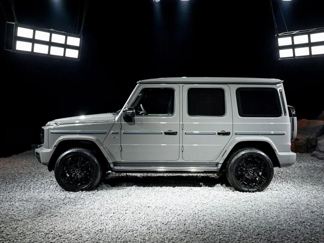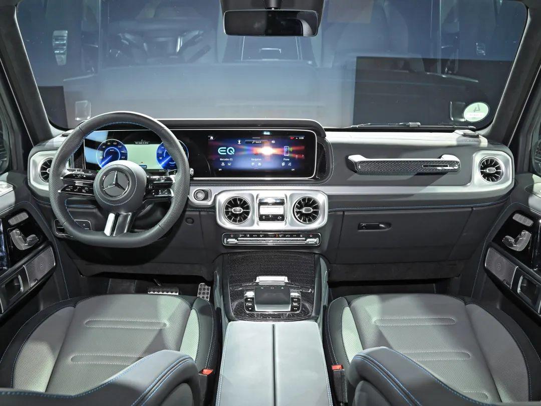 從外觀設計來看,無論是之前的EQG概念車,還是如今首發亮相的G 580,在設計上都是保留了G級經典的設計元素,也就是方盒子+圓形大燈,能讓人一眼看出這是G級家族的產品。相比于概念車的圓潤和科技感,純電G級越野車更加硬朗,中網采用橫向飾條點綴,中網的邊緣燈帶可以點亮,前包圍兩側的裝飾件采用矩形造型,突出硬派氣質。車身配色方面,新車將提供啞光南海藍色車漆、曜巖黑色金屬漆、啞光貝母白色車漆、貝母白(亮色)車漆和經典灰色非金屬車漆。