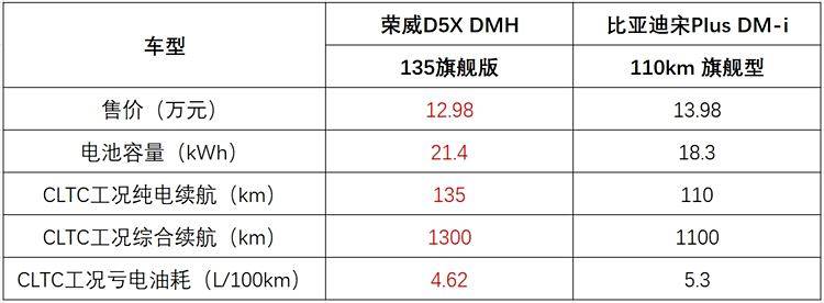 榮威D5X DMH的續(xù)航能力在同級產(chǎn)品比較,無疑具有領(lǐng)先的優(yōu)勢,在CLTC工況下,全系車型綜合續(xù)航里程達(dá)到1300km,同時還標(biāo)配21.4kWh的高效長續(xù)航電池,擁有135km同級最長純電續(xù)航,虧電油耗低至4.62L/100km,一款10萬元級的SUV具備如此出眾的續(xù)航性能,確實(shí)相當(dāng)罕見。如果對此沒有概念,可以參考同級的比亞迪宋Plus DM-i 110km 旗艦型,售價為13.98萬元,從各項(xiàng)續(xù)航相關(guān)的性能參數(shù)可以看出,榮威D5X DMH的整體優(yōu)勢確實(shí)比較明顯。