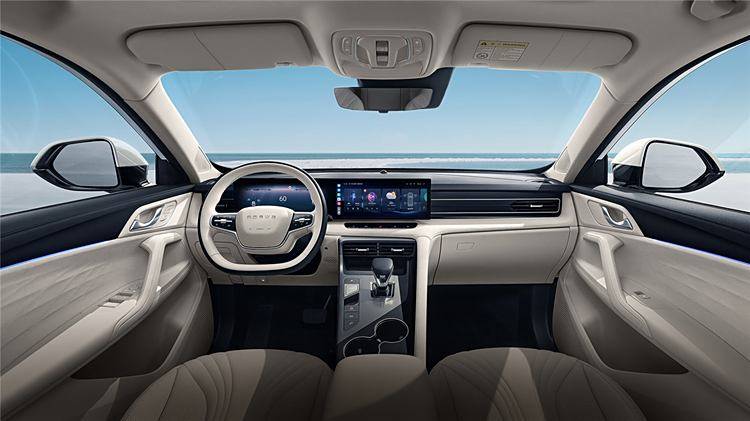 首先在設(shè)計(jì)方面,榮威D5X DMH 135旗艦版還配備19英寸雙色星耀輪轂,內(nèi)飾則提供粟米白的配色方案,還采用了豪華麂皮材質(zhì),與頂配的135科技版比較接近,看起來更有高級感。