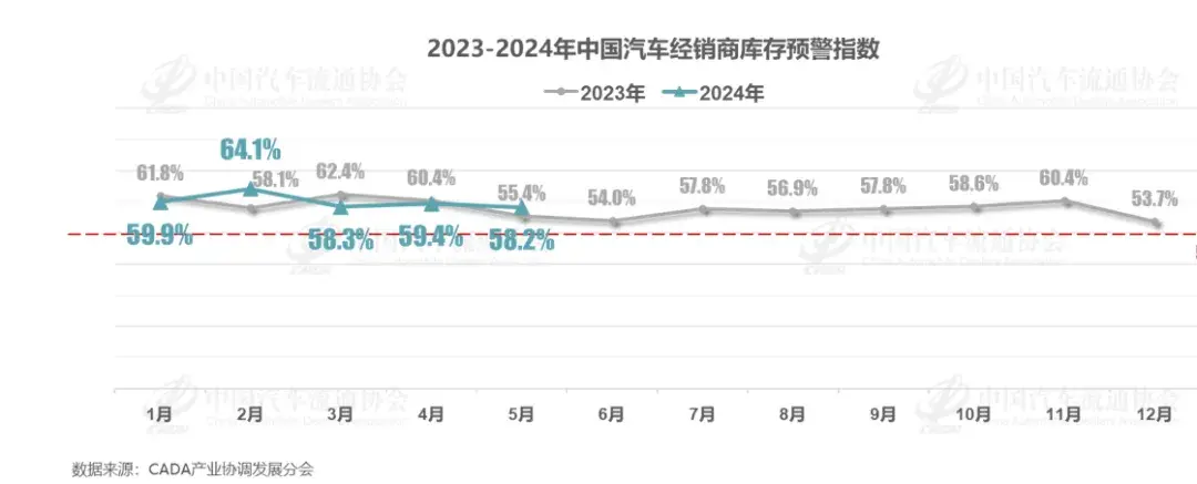 毫無疑問,降價銷售,是經銷商的自救行為,那么在經歷掙扎的5月后,經銷商們的庫存情況又是如何?對此中國汽車流通協會最新一期“中國汽車經銷商庫存預警指數調查”顯示,5月經銷商庫存指數為58.2%,同比增長2.8%,環比下降1.2%。
