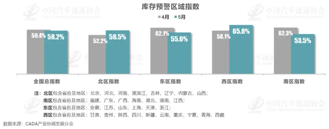 從全國四大分區來看,北區和西區的庫存指數出現較大的增長,特別是西區,從上月的58.1%增長到了65.8%!已經是屬于較高位的水平。而南區53.5%的庫存指數則是全國最低,相信這與過去5月南區頻頻舉辦的各大車展有較大關聯。