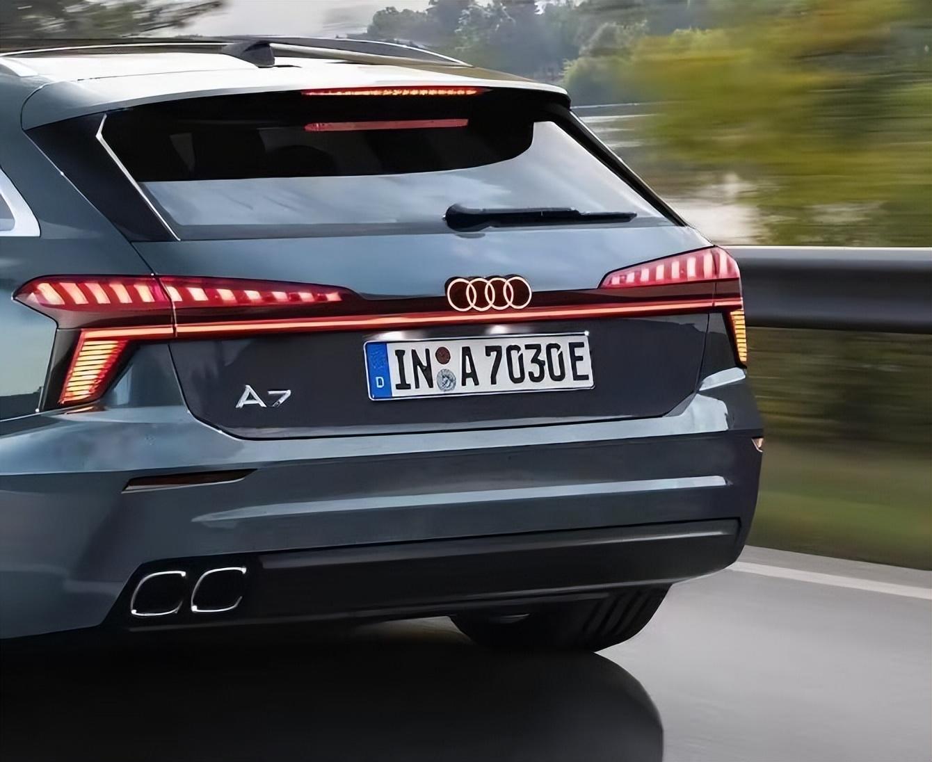 車尾部分,通過下方實拍圖片可以看出,新一代奧迪A6也對細節設計進行了調整,和激進攻擊韻味十足的前臉造型,起到了較好的呼應效果。無論是車頂位置的擾流板,還是帶有擴散器裝飾的下包圍以及雙出的排氣布局,都很好強調了運動屬性。最為關鍵的一點在于,新一代奧迪A6將全新風格的尾燈組合運用其中,所呈現出的視覺觀感還是很出眾的,對得起“燈廠”的稱號。