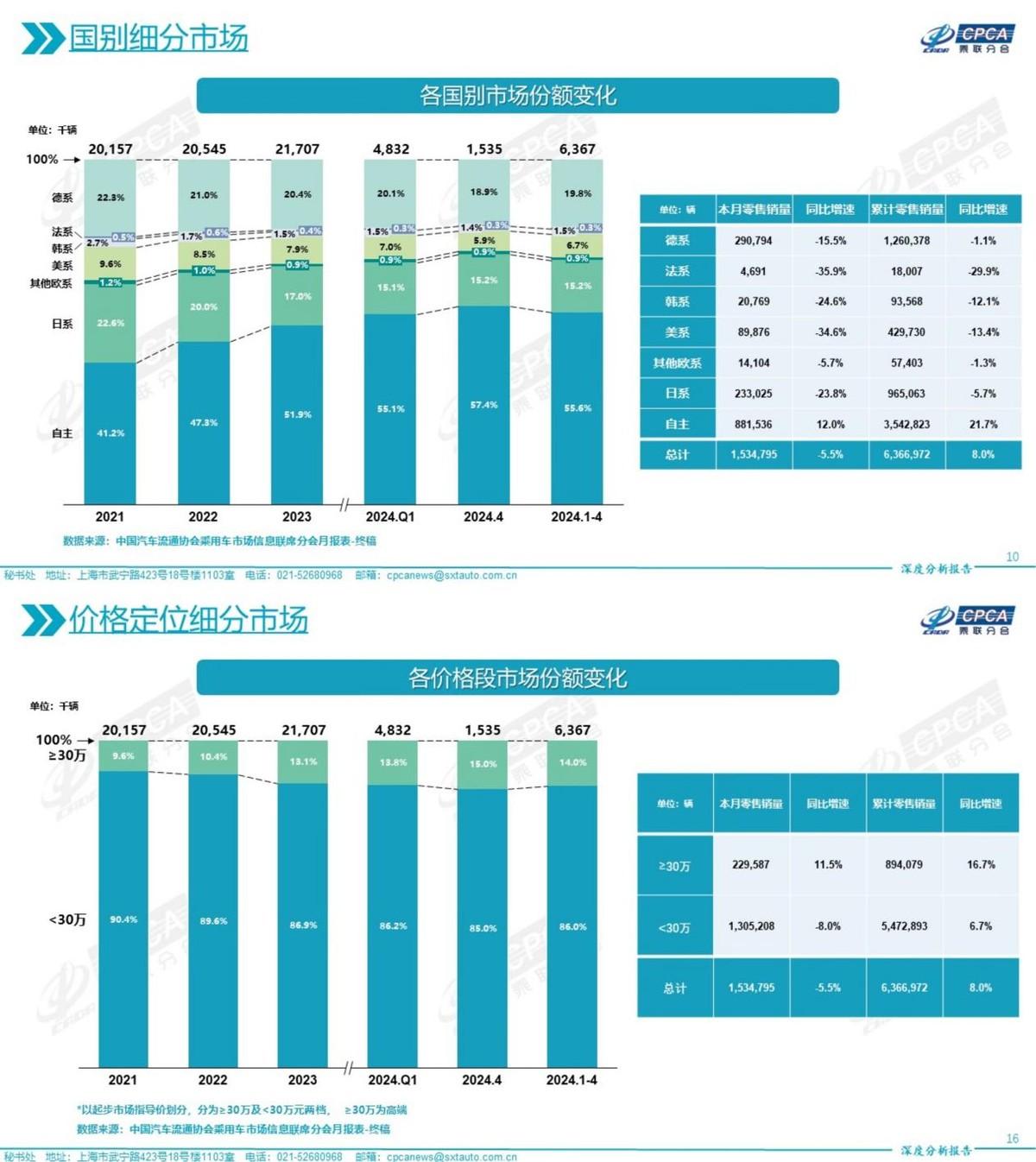 據乘聯會所發布的《2024年4月份全國乘用車市場深度分析報告》內容: