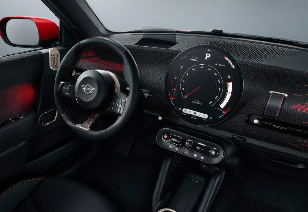 內飾方面,新車整體的內飾部分十分簡潔、科技,具有很強的MINI風格,并且配備了全新的無邊框圓形OLED顯示屏,內置有全新MINI操作系統9,整體的科技感和實用性得以保證。