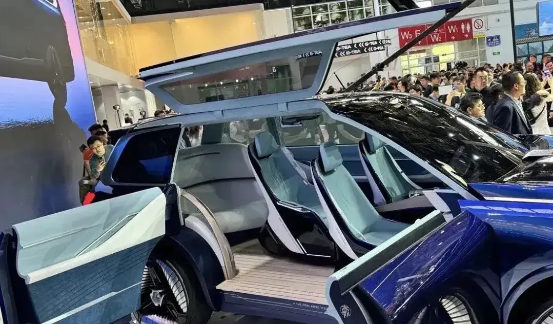 同時車型整體的開門方式非常夸張,采用了對開門和上開門的方式,這樣的開門方式在國內市場其他車型上也有所體現,但是還是非常少見的,對于這樣大尺寸的豪華車型來說,這樣的開門方式能夠提升車型整體的高級感。