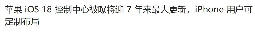 iOS 18的控制中心,會迎來七年以來最大的一次更新——