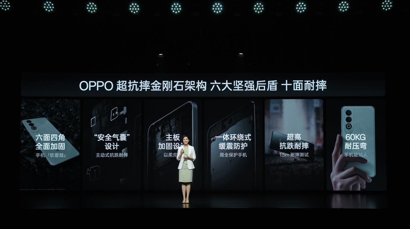 在輕薄機身基礎上,OPPO K12在機身結構設計上也進行了全面升級,采用獨家自研的「超抗摔金剛石架構」,針對手機屏幕、背蓋、四角、四邊,OPPO K12都做了加固,實現十面耐摔。