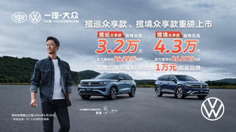 6月7日,一汽-大眾攬境眾享款、攬巡眾享款正式上市,作為衍生版本,新車不光在內(nèi)外設(shè)計(jì)、功能配置方面全面升級(jí),同時(shí)全系指導(dǎo)價(jià)至高官降4.3萬(wàn)元,目前指導(dǎo)價(jià)僅需24.29萬(wàn)元起,具體售價(jià)信息可參考下表: