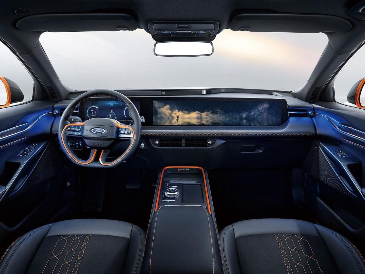 內飾部分,主要識別特征基本相似,還是那個超大中控屏,但相比起家居風格強烈的普通版,運動版整個內飾和座椅都要顯得更加運動化,氛圍燈也變成了高亮色,座椅也從普通版的全皮質變成了翻毛皮和皮質的混搭,簡單來說,蒙迪歐運動版的內飾會更加有運動感。