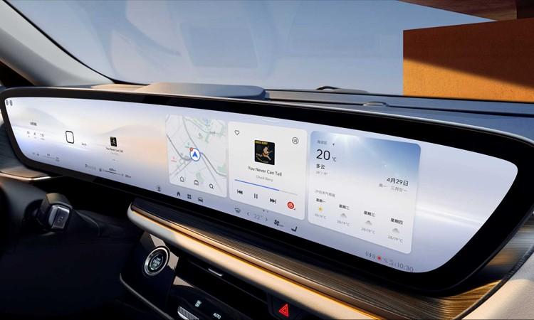 內(nèi)飾部分,全新一代昂科威PLUS在新一代VIP智能電子架構基礎上融入eConnect智能座艙設計,標志性的EYEMAX 30吋/6K弧面屏依舊非常炫酷,同時內(nèi)置高通驍龍8155芯片,除了有豐富的多媒體生態(tài)服務,其AI語音能夠做到0.3s的快速響應,并且支持最長10條連續(xù)指令識別。