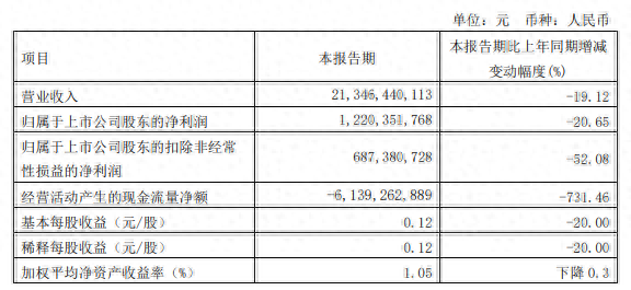 4 月 26 日消息,廣汽集團今日發布公告,2024 年一季度實現營業收入 213.46 億元,同比下降 19.12%;歸母凈利潤 12.2 億元,同比下降 20.65%;基本每股收益 0.12 元。
