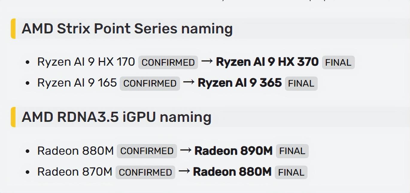 Strix Point系列處理器的命名規則發生了變化,而且AMD一直在調整。AMD最初制定的命名是“Ryzen AI 100”系列,近期才決定跳過100和200系列,直接命名為“Ryzen AI 300”系列。