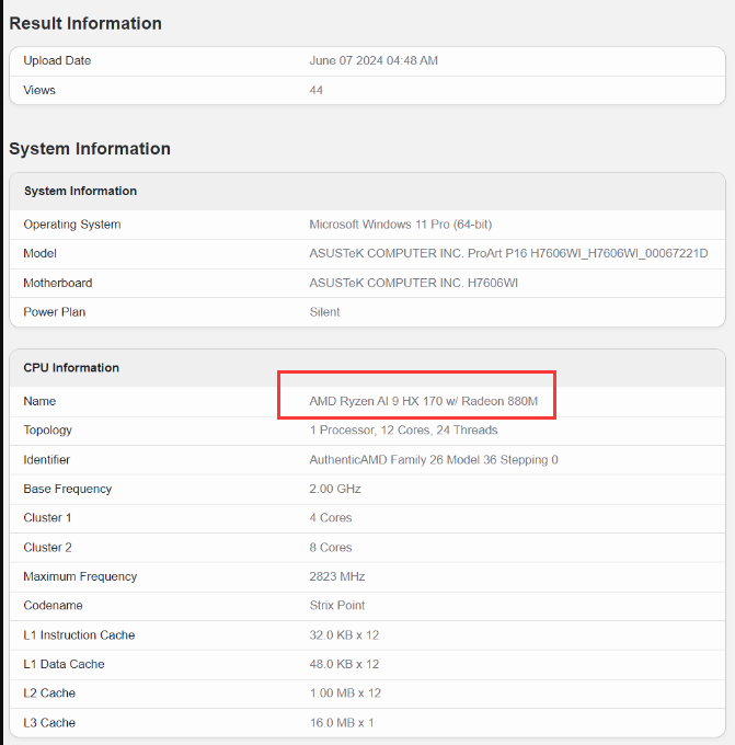 因此,小編下面要分享的Ryzen AI 9 HX 370這款處理器在相關截圖中被識別、標注為“Ryzen AI 9 HX 170”,請讀者不要感到奇怪,二者其實是同一款處理器。除此之外,已知原Ryzen AI 9 HX 165也已經被重新命名為Ryzen AI 9 HX 365。