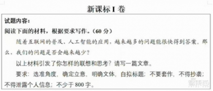 AI這一當下的話題熱詞赫然出現在了新課標I卷的高考語文作文中: