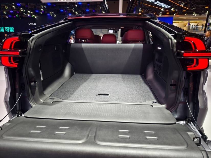 長(zhǎng)安啟源E07之所以能使用激進(jìn)的大溜背線條,是因?yàn)閽仐壛藗鹘y(tǒng)的后備廂,轉(zhuǎn)而用上了類似皮卡的“后斗”方案。后穹頂支持一鍵滑動(dòng)收納,讓尾部形成開放式的儲(chǔ)物空間,裝載能力遠(yuǎn)超傳統(tǒng)SUV。同時(shí),“后斗”與車廂內(nèi)部并沒(méi)有采用硬隔斷,而是用上了可電動(dòng)收折的隔斷,完全能拓展出更豐富的使用場(chǎng)景。