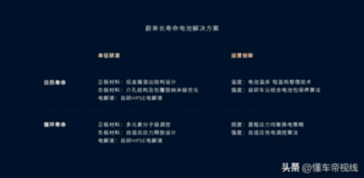 今年3月,蔚來汽車召開長壽命電池戰略溝通會,聚焦電池壽命問題,提出長壽命電池解決方案,實現動力電池使用15年,達到85%健康度的技術與運營目標。