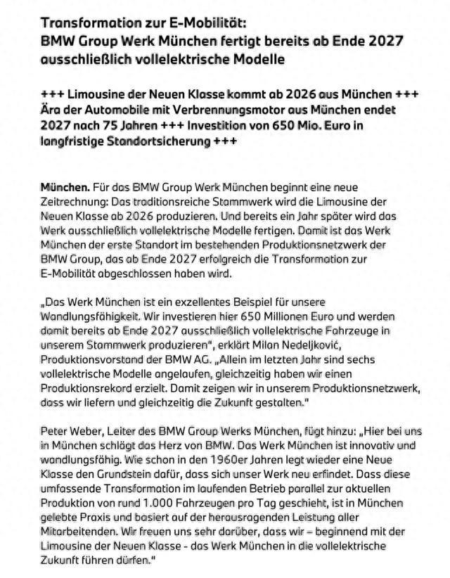 2024年開年,寶馬便向世人拋出一個驚天大消息。1月10日,寶馬集團宣布將在德國慕尼黑工廠進行大規模改造,投資6.5億元改造其四棟建筑以及一條帶有物流區域的新汽車裝配線和新的車身車間,目的在于全面生產純電動車型,最早將于2027年底生產純電動車型,這一舉措標志著寶馬總部工廠將徹底停產內燃機汽車,曾經宣稱“永遠不會放棄內燃機”的寶馬汽車,為何要做出這樣的舉措呢?