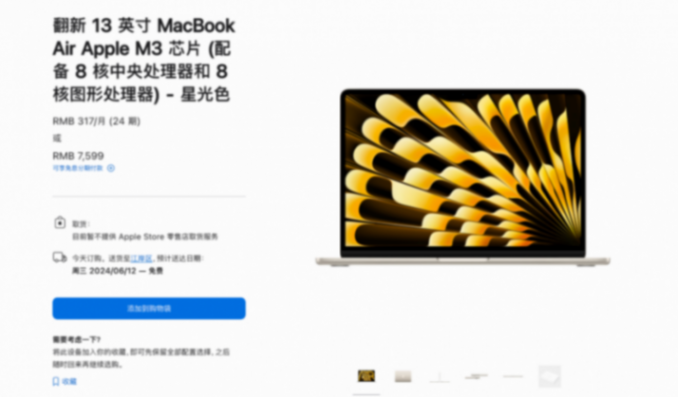 很難想象,僅僅發布了三個月,八折的官翻版本就直接上架,要知道現在 MacBook Air M2 版本還在官網出售,而且還要 7999 元,官翻的 M3 版本還要比 M2 版本便宜 400 塊錢。