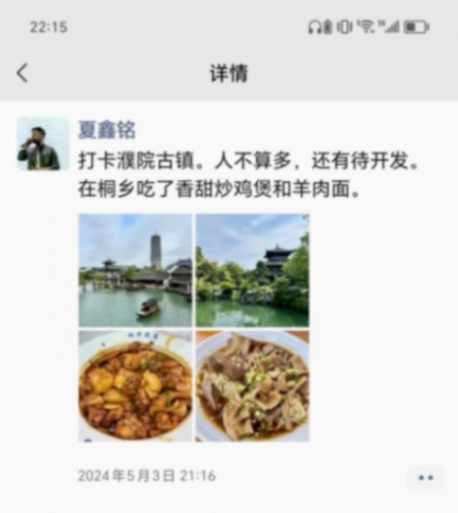 我去過濮院古鎮的10天后,我在上海工作的安徽籍朋友夏鑫銘也去了濮院古鎮,并發了朋友圈。