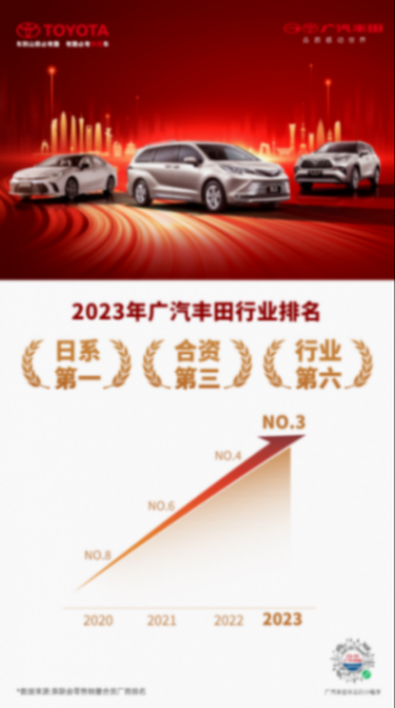 2023年廣汽豐田銷量達901025輛,在合資廠商陣營中,力壓上汽通用,摘得季軍,成為唯一進入合資前三甲的日系品牌;