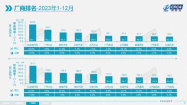根據乘聯會公布的廠商零售銷量排行榜