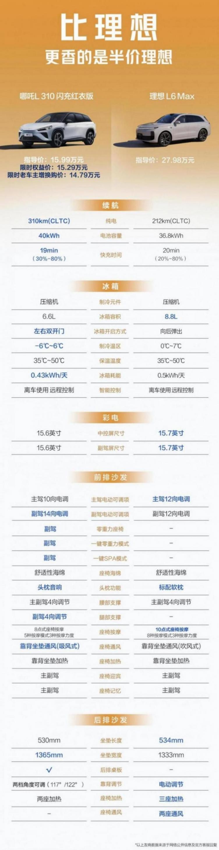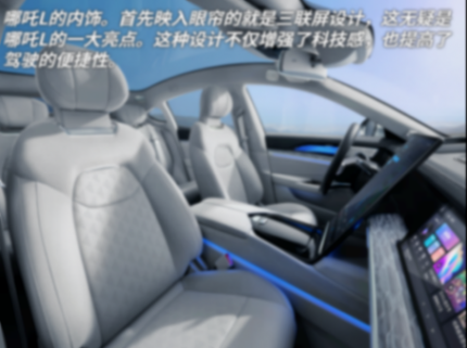 步入車內,內飾設計呈現出沉穩而不失現代感的格調,360度環抱式座艙布局帶來寬敞舒適的空間感受。中控臺遵循極簡主義理念,上下兩部分劃分清晰,隱藏式空調出風口設計巧妙,視覺效果舒展而協調。多功能三幅式方向盤集成換擋功能,操作便捷;中控屏采用雙15.6英寸屏幕支持語音對話、人臉識別、屏幕觸控等多種交互方式。更是配齊了“冰箱彩電大沙發”三大件。更而售價24.98萬元的理想L6也是雙15.7寸的屏幕,但相比哪吒L的三大件,理想L6明顯不如哪吒L有優勢。