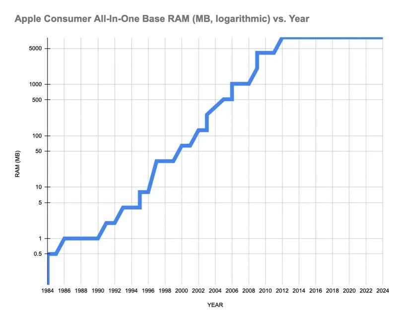 而最近據(jù)David Schaub在 Mastodon 平臺(tái)上發(fā)布分析論文,表示自從庫廚子掌舵蘋果公司之后,蘋果基礎(chǔ)款 Mac 的內(nèi)存升級周期就已經(jīng)停止了,喬布斯之前好歹過陣子會(huì)給大伙升級一下,而庫廚子僅升級過一次。