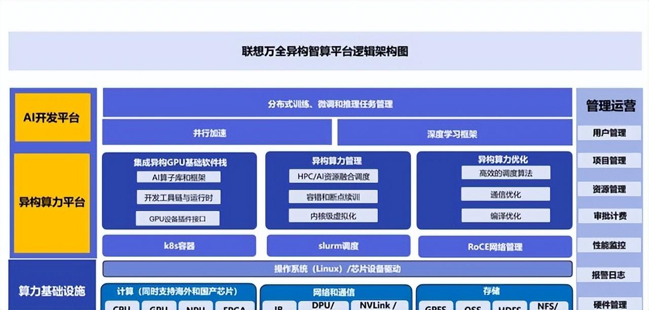 所謂一橫,是指異構(gòu)智算平臺。這款平臺融合了聯(lián)想多年來在通用計算、科學(xué)計算、AI計算領(lǐng)域的技術(shù)積淀,可統(tǒng)一調(diào)度和管理CPU、GPU、DPU等異構(gòu)算力。通過智能算法,異構(gòu)智算平臺能精準(zhǔn)匹配場景需求與算力資源,最大化算力利用率。