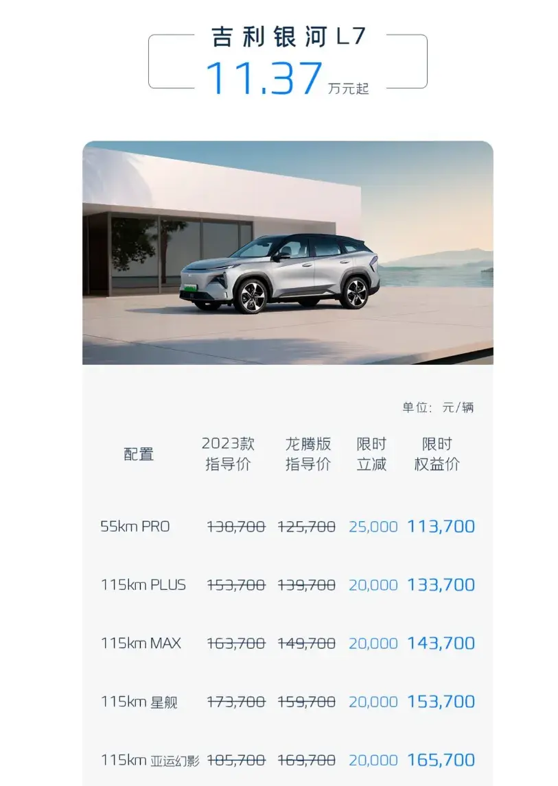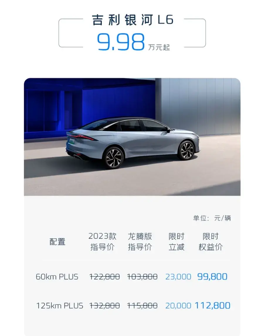 經過價格調整后,吉利銀河L6只需9.98萬元起,吉利銀河L7只需11萬元起,將吉利銀河混動系列的主銷價格區間下探到了10~15萬元。
