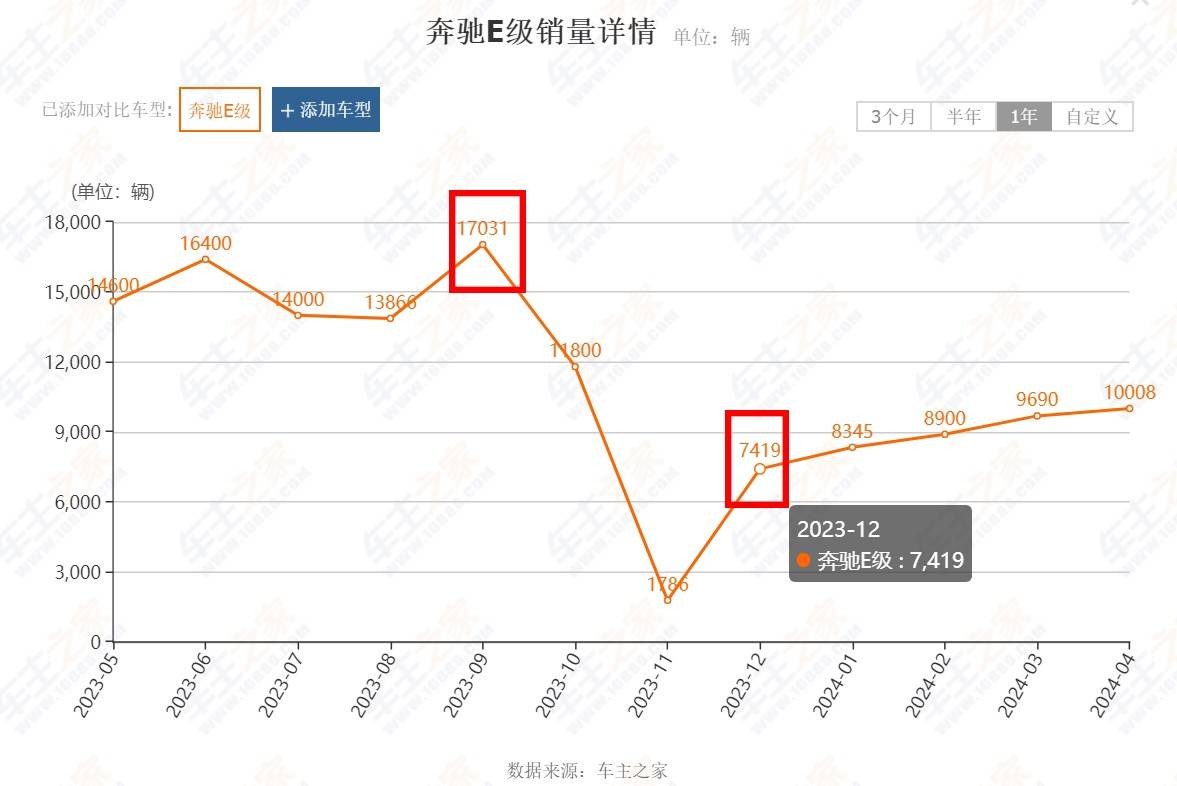 果不其然,奔馳E級在去年12月份上市后,其首月的銷量數據便僅有7419輛新車,而在2024年的1月份,奔馳E級也只交出了8345輛新車的銷量成績單。要知道,去年9月,奔馳E級可是還能取得17031輛新車的銷量成績,如今過去才短短一個季度,其月銷量數據便下滑至了7千~8千多輛,也就讓人不禁感慨:原來有錢人也覺得現在的奔馳E級賣得太貴了,因為銷量就是最好的“試金石”。