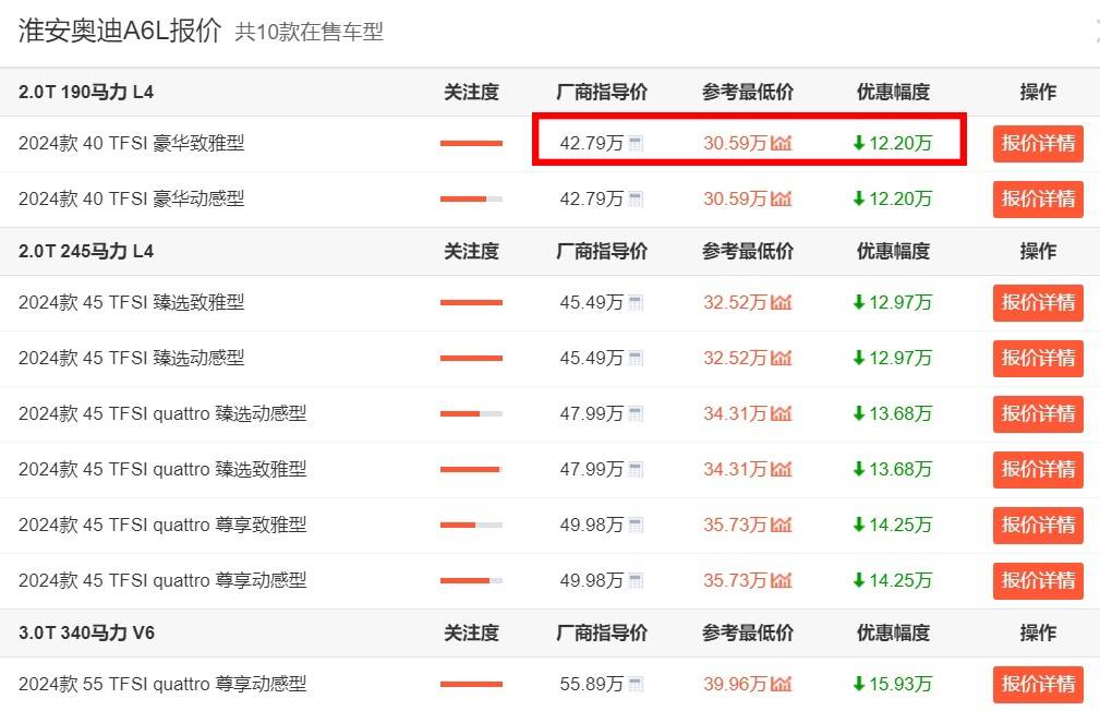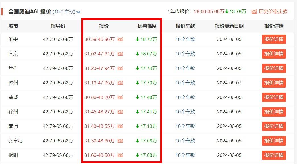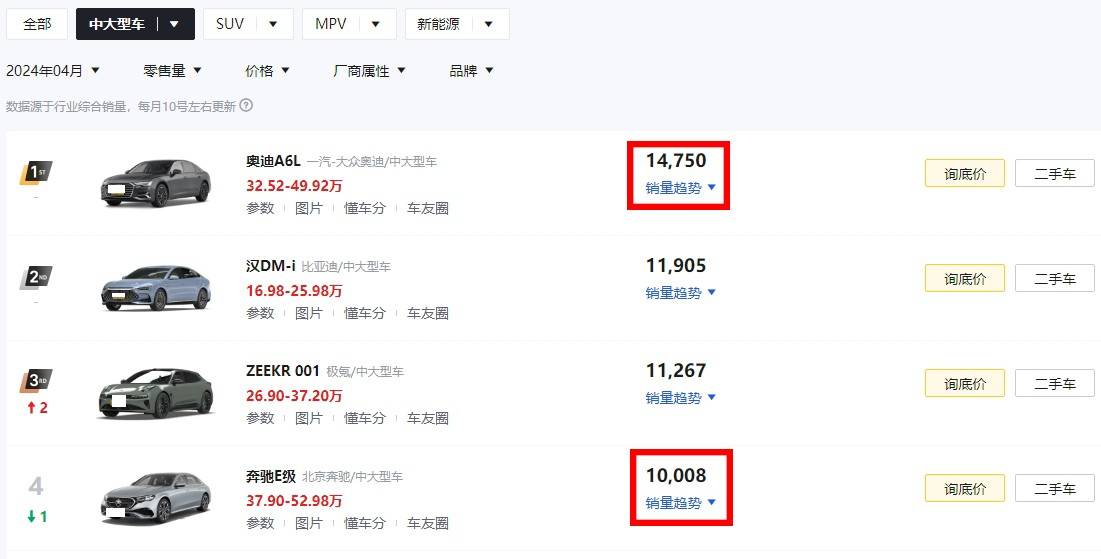不過,雖然奔馳E級在部分地區的優惠已經來到了10萬,但是相比較起另外一位競爭對手奧迪A6L,其在終端價格方面還是要略遜一籌。要知道,奧迪A6L之所以能夠在過去的4月賣出去14750輛新車,排在奔馳E級前面,就是因為它終端實際的優惠力度要更大。