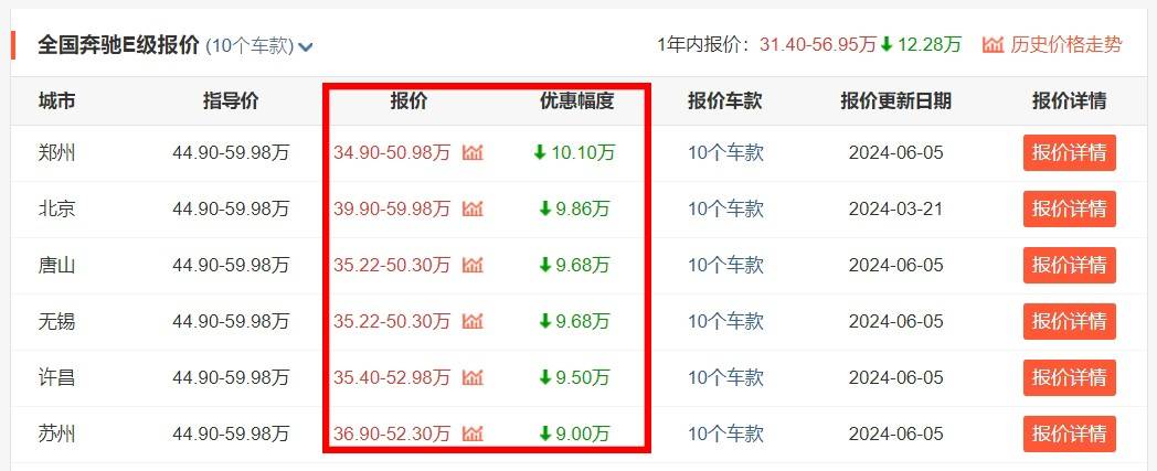 而或許是因為看到了車型在終端消費市場的“遇冷”,這不,全新奔馳E級目前在終端就已經出現了部分地區能優惠10萬元起步的銷售行情。如此一來,也就意味著原價44萬起步的奔馳E級,現在只需34萬左右的價格就能夠買到。不得不說,這才是全新奔馳E級所該有的銷售價格與市場行情,也替那些花原價買全新奔馳E級的朋友們小小地惋惜一下,你們這波韭菜確實是被割得挺狠。