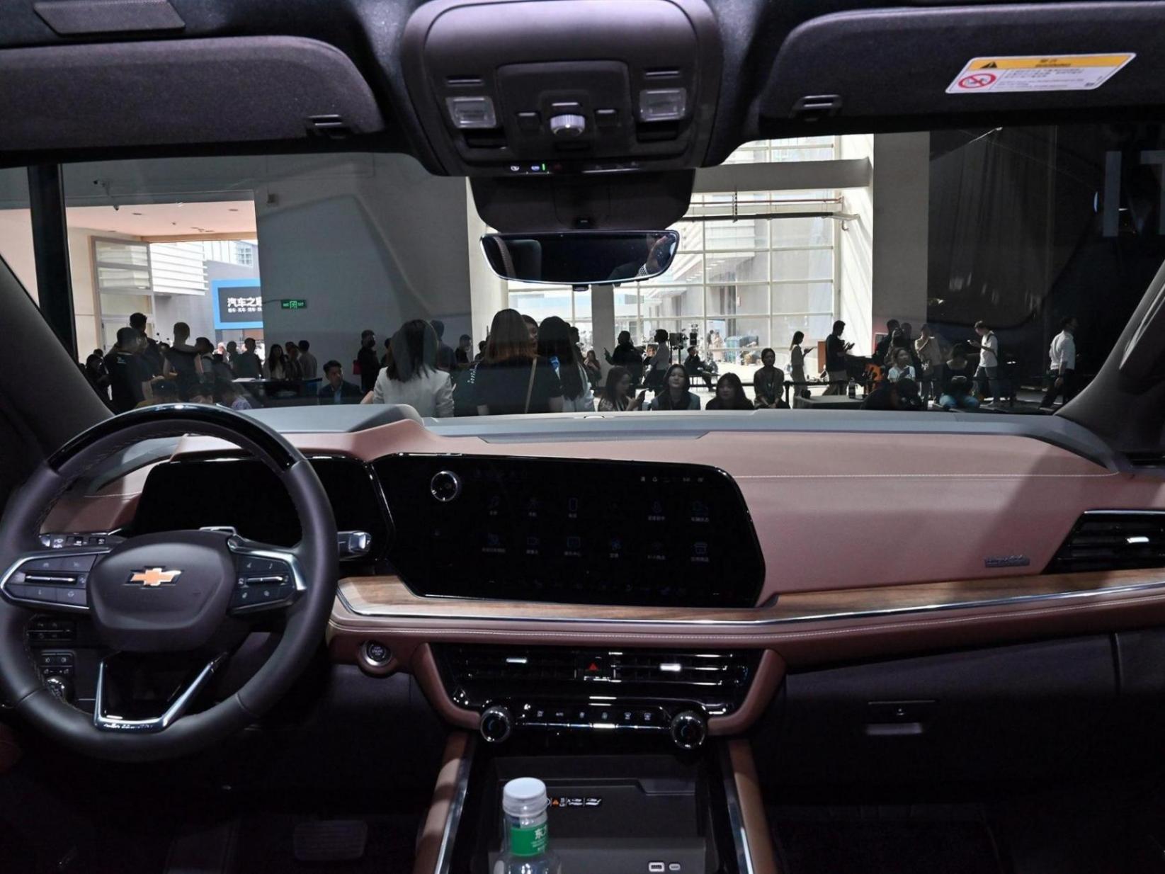 車頂有著大尺寸的擾流板,后保險杠部分除了鍍鉻條,還有雙邊雙出排氣增,添了一絲運動感。在內飾部分,新車則是鮮明的最新家族風格,其實與國內即在售或即將推出的雪佛蘭相似,只是各方面都加大了一號,雙大尺寸液晶呈錯落式排列,向駕駛的偏轉中控臺面,偏轉幅度倒是并不算大,大面積皮革縫線工藝覆蓋,貫穿鍍鉻條木紋面板填充,也都不會缺席,座椅中央當然是非常寬大的平臺化扶手設計,符合美系車型的定位,寬大舒適座椅,大面積打孔還有特殊的刺繡標簽,與外觀形成對應。