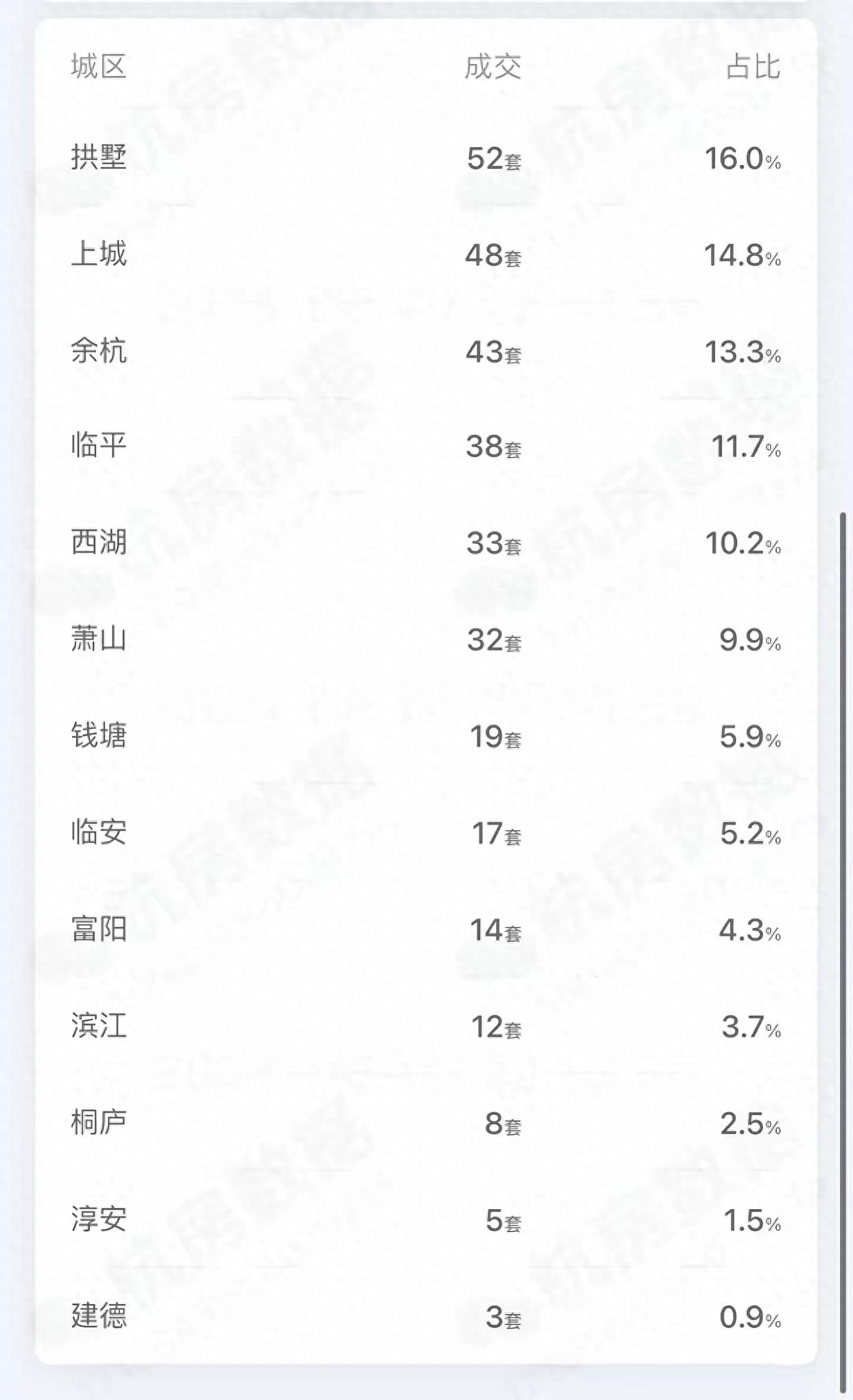 我們可以看到在杭州的幾大區域里面真的是漲聲一片,每一個區域都在上漲,最高的漲幅已經突破了16%。