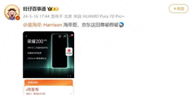 有知名科技博主就這一情況向榮耀CMO姜海榮求證,對方直接回復"確有此事"。