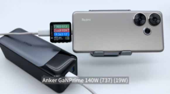 Anker GaNPrime 140W (737) 為Redmi Turbo 3充電,使用POWER-Z KM003C測得充電功率為7.90V 2.45A 19.36W。