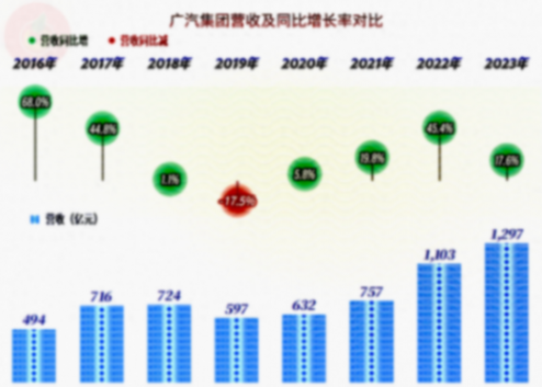 2023年,廣汽集團(tuán)的營(yíng)收同比增長(zhǎng)了17.6%,達(dá)到了1297億元,看起來(lái)還不錯(cuò),按理說(shuō),其應(yīng)該顯得比較從容才對(duì)。