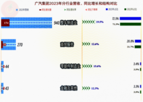 回過(guò)頭來(lái)看2023年的情況,情況似乎還相當(dāng)不錯(cuò),所有的業(yè)務(wù)都在較快增長(zhǎng),特別是其整車(chē)制造業(yè)務(wù),規(guī)模已經(jīng)接近千億元了,就是該核心業(yè)務(wù)支撐著其營(yíng)收能較快地增長(zhǎng)。