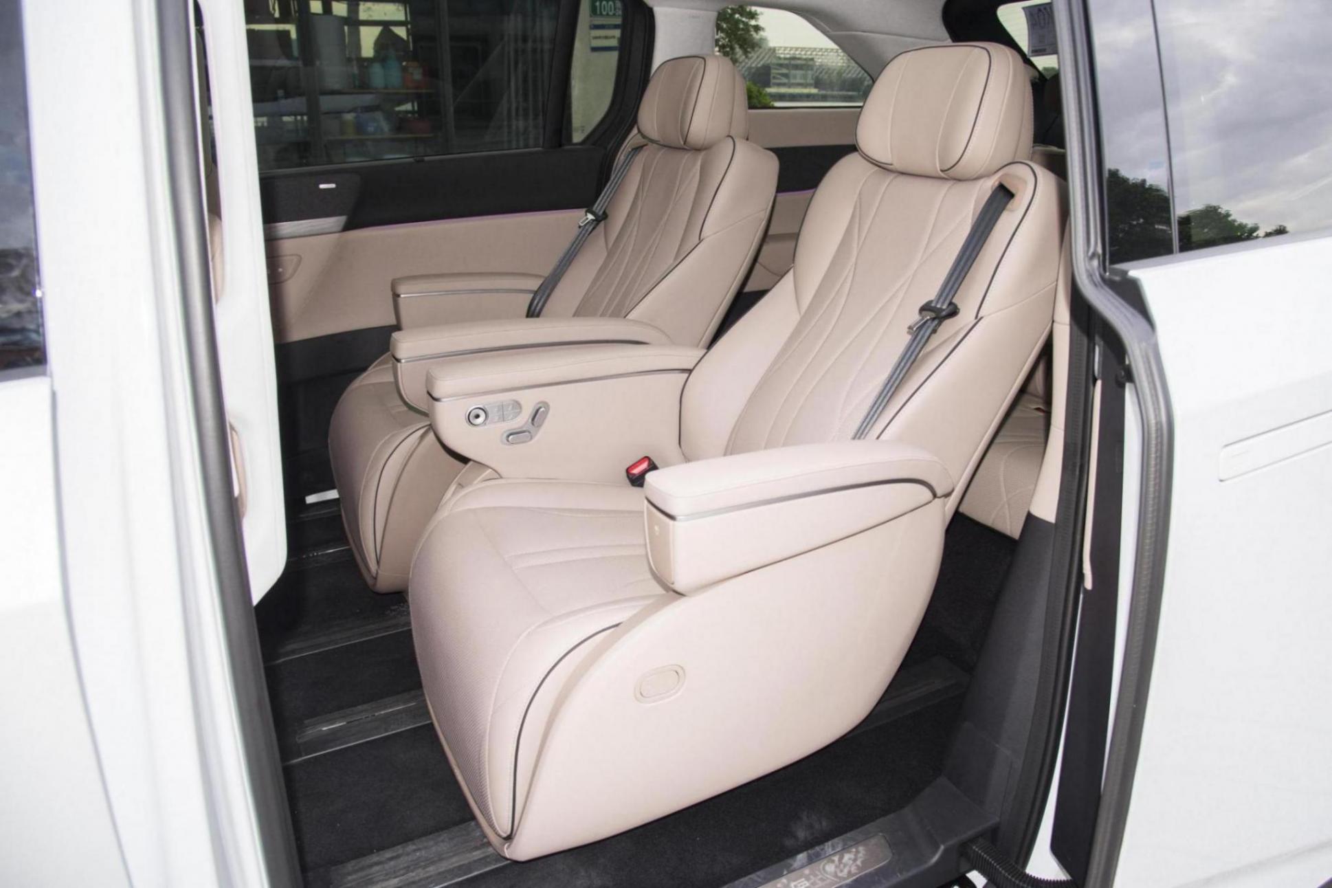 空間方面,小鵬X9的長寬高分別為5293x1988x1785mm,軸距為3160mm,定位中大型MPV,座椅布局為2+2+3的7座布局,車內座椅采用真皮包裹,主副駕座椅均支持電動調節,前排座椅還支持加熱、通風、記憶功能,二排座椅支持加熱、通風、按摩功能,三排座椅僅支持比例放倒功能,行李艙容積為2554L。