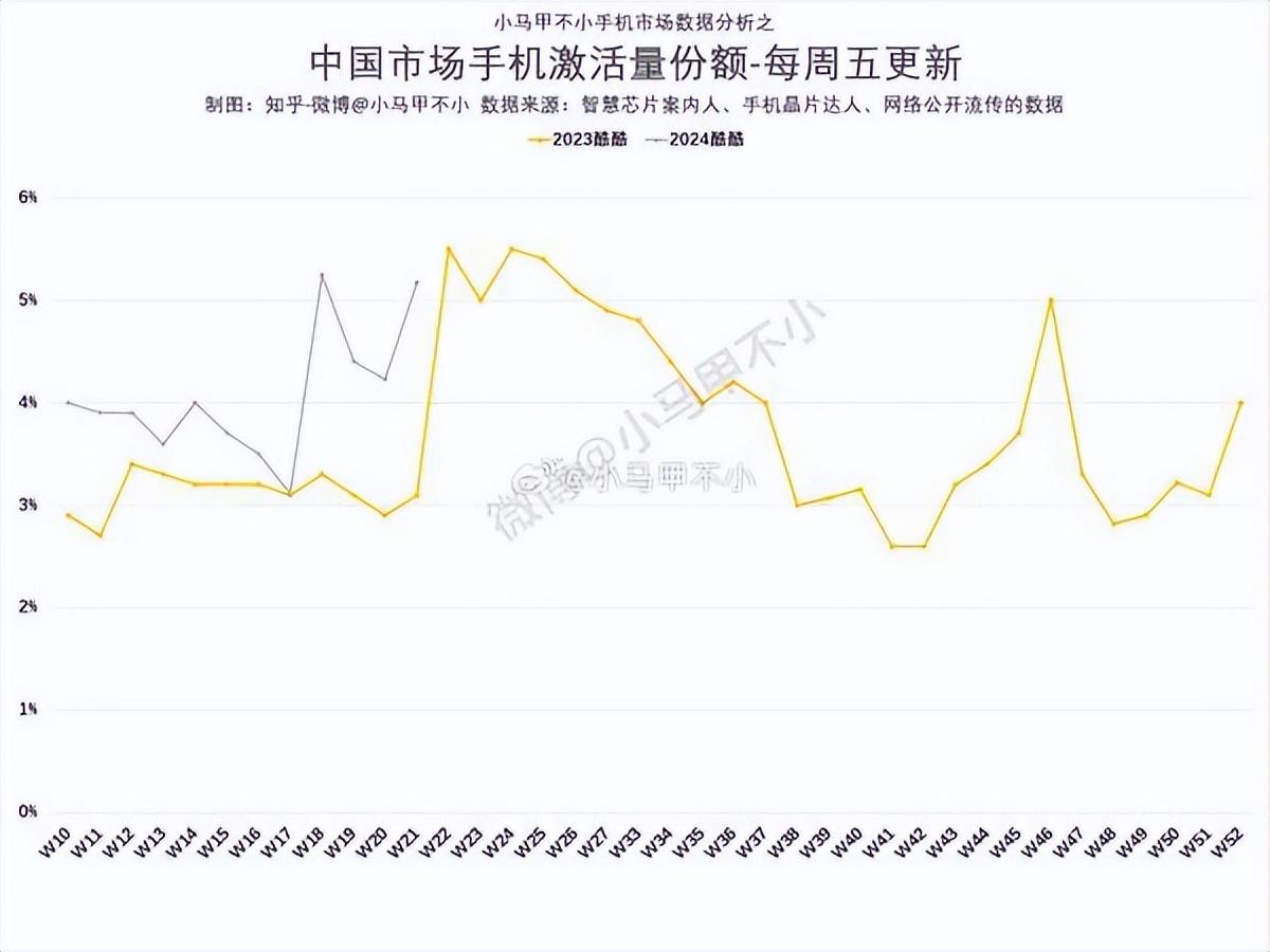 自從年初以來,iQOO就像開了掛,市場份額一路高歌猛進。想象一下,去年這會兒,它還在3%左右徘徊,而現在,直接飆到4%以上,甚至某些關鍵時刻差點摸到5.5%的門檻! 這增速,簡直是坐上了火箭,嗖嗖的!圖表里那條黃線(代表iQOO),簡直就是斜著往天上沖的架勢,看得人心潮澎湃。
