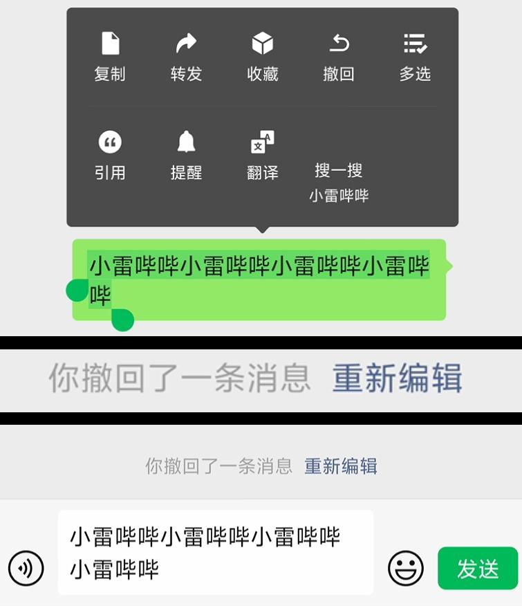 時間來到2017年,微信對「撤回消息」進行了一波升級,增加了可編輯的操作。
