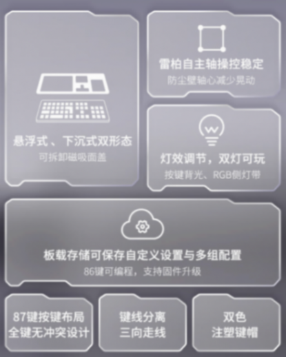 4 月 28 日消息,雷柏 V500PRO-87 升級款鍵盤目前已經在京東開售,這款鍵盤擁有懸浮式、下沉式雙形態,配備可拆卸磁吸面蓋,首發價 89 元