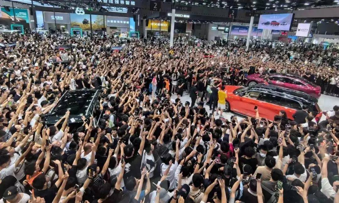 前幾天去深圳大灣區車展,那雖然不是什么大型車展,但人氣也挺旺的嘛。因為深圳是誰的地頭?比亞迪和華為呀。比如鴻蒙智行展臺,余老板往上面一站,還邀請來那位穿紅衣服的老網紅,那人群你們自己看看。