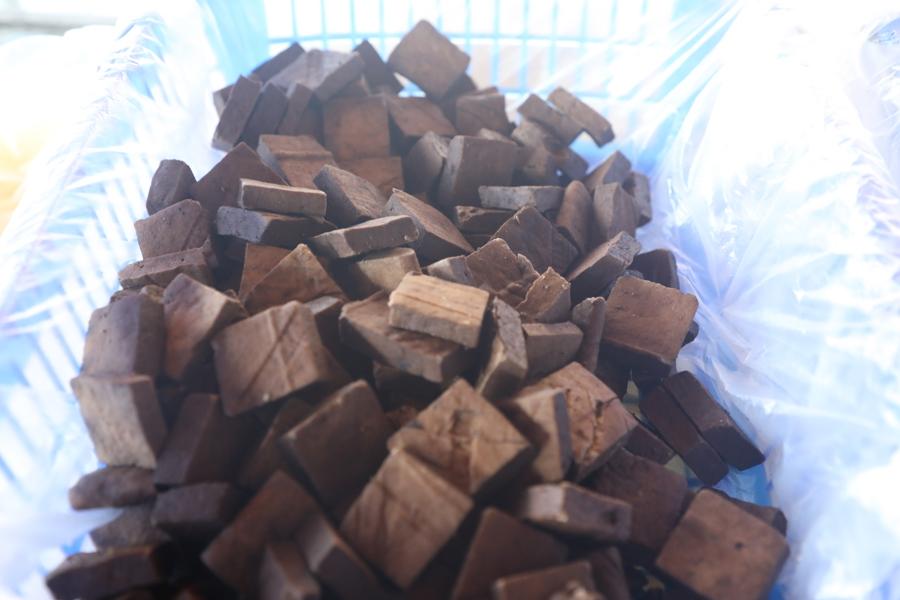 楊金華家的豆制品,摒除一切化學添加劑,堅持取料天然,再加上其純手工制作等特點,不僅在本地有著大批穩定顧客,還吸引了不少在外工作生活的興塔人特意過來購買。“他們家的臭豆腐,我拿貨有16年了。品質就是好,吃上去和別的地方不一樣,口感細膩鮮嫩,受顧客歡迎。”做臭豆腐小吃生意的熊師傅,正好前來取早早預定好的生臭豆腐片。