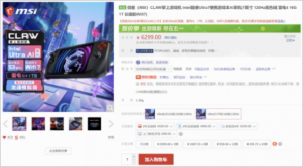 如果你已心儀微星Claw掌上游戲機(jī)很久,可以到京東商城購(gòu)買。目前Ultra 7處理器版本的售價(jià)為6299元,Ultra 5處理器版本的售價(jià)為4999元。