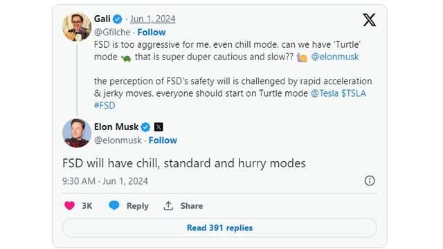 另外,被爆料細節(jié)也比以往明顯豐富,包括在中國市場將主推訂閱式,按月付費價格約為98美元。且,更為同頻的是,華為和特斯拉兩個巨頭,幾乎也是在同一時間段同時給新版本的智駕分配了三種駕駛模式,激進、標準、柔和。不同點是,華為已經(jīng)在問界等車型上進行了推送,而馬斯克則是靠嘴說,接下來將有。