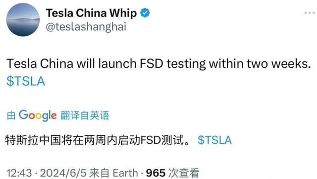 6月5日,有消息爆料,特斯拉中國將在2周內(nèi)啟動FSD測試;