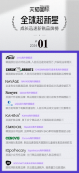近日,天貓國際發布了2024一季度全球超新星品牌榜。